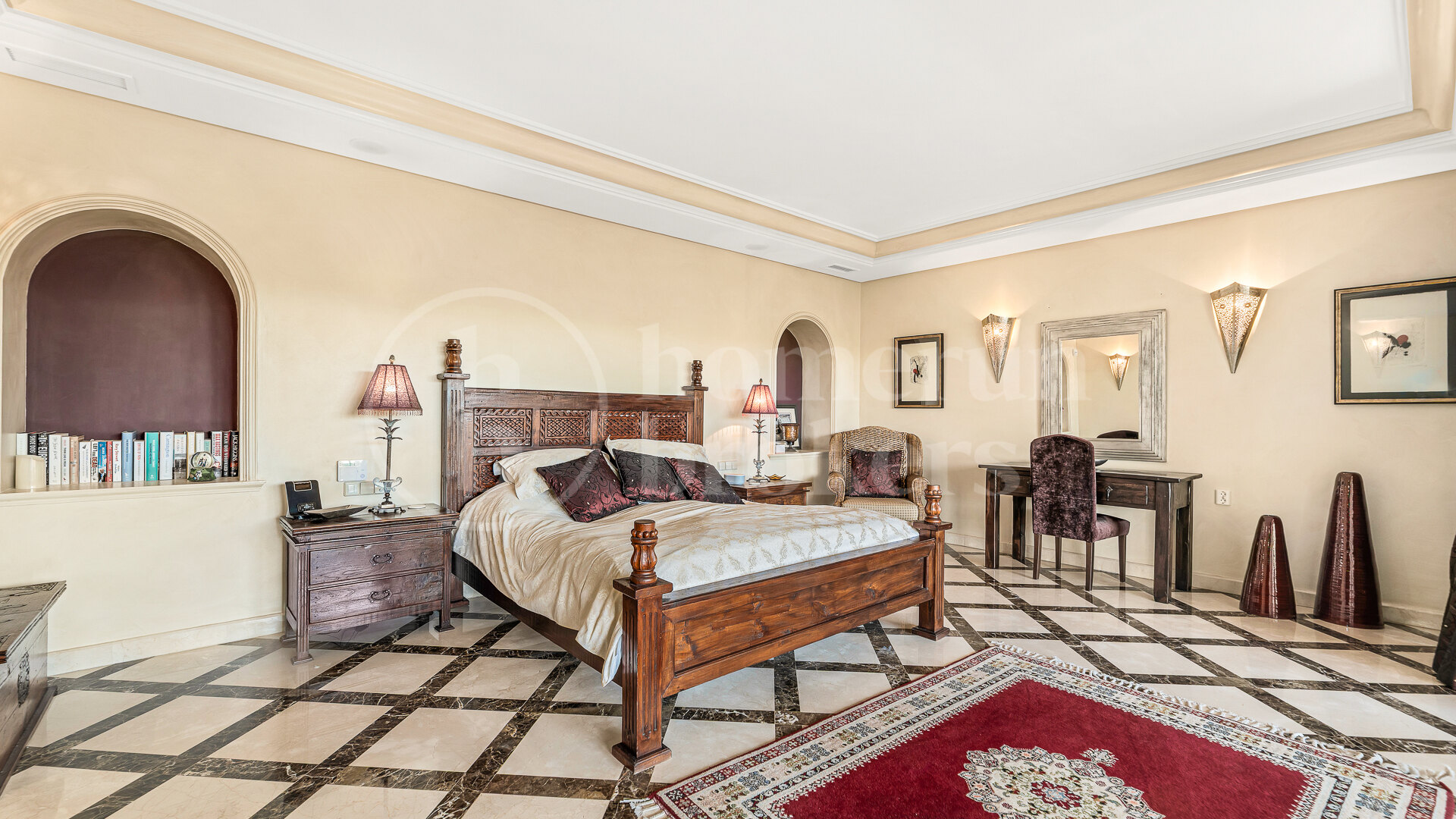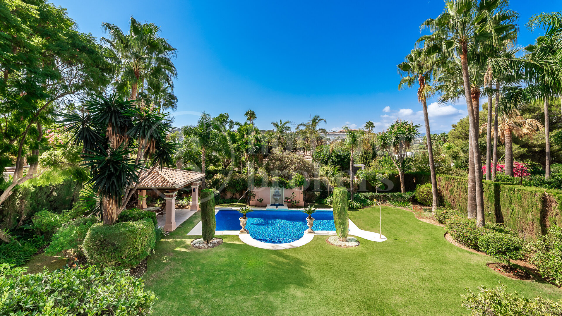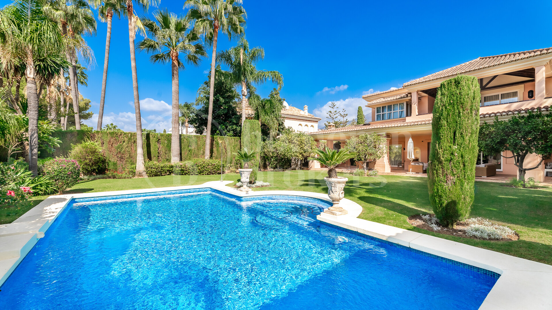 Villa for sale in Nueva Andalucía offering 5 bedrooms and multiple living areas distributed across three levels, including a basement, with a private pool, landscaped gardens and a garage for up to 5 cars. This property combines generous built space with a practical layout designed for both everyday living and entertaining, while its classic Andalusian architecture, handcrafted details and warm character create a distinctive and timeless home environment.