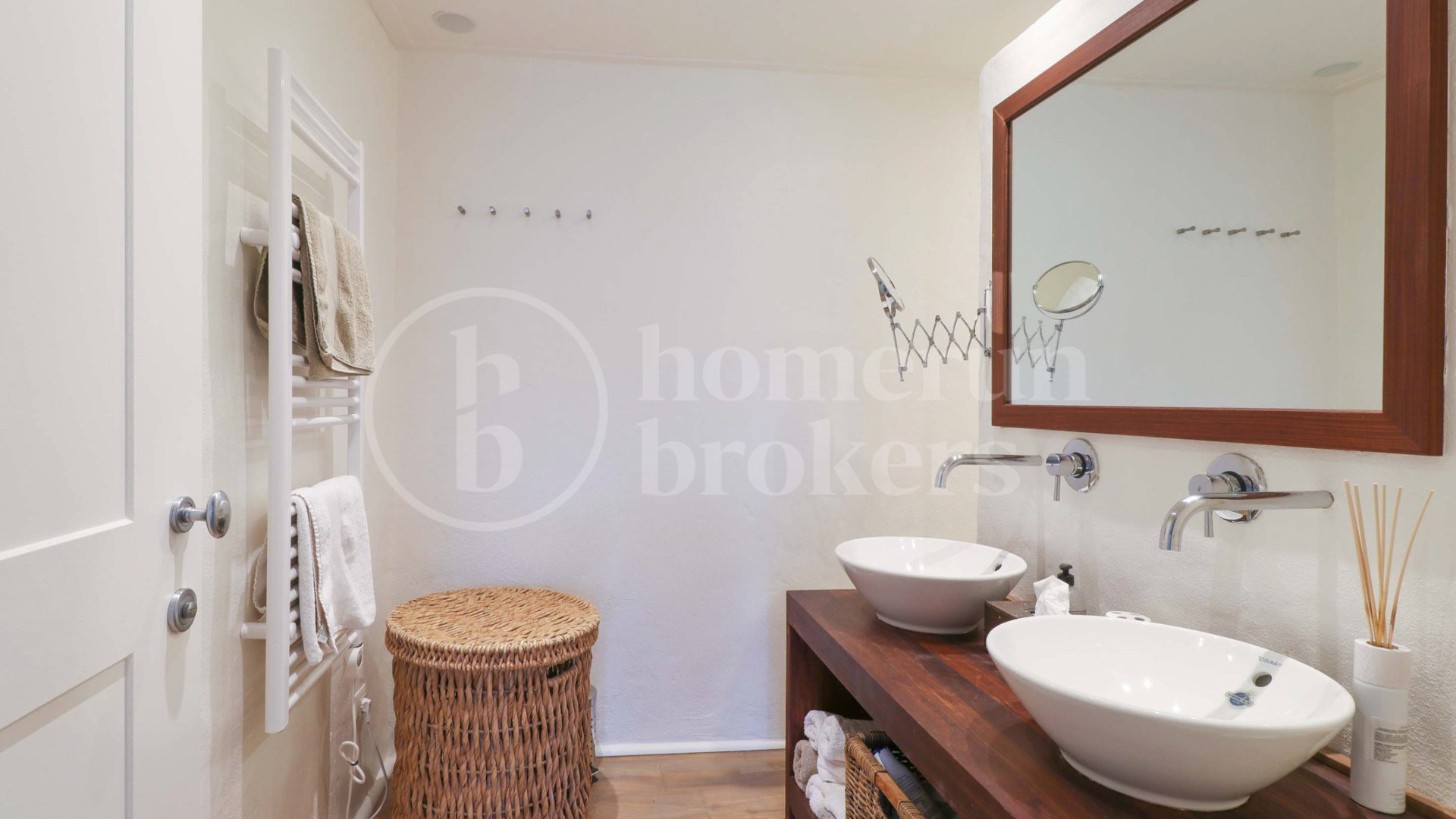 On the lower level, the property includes a spacious garage for up to six cars, a laundry area, and generous storage space. There is also significant potential to extend the home, with the possibility to add an upper floor or to create an independent apartment behind the garage, benefiting from large west-facing windows and private terraces.
