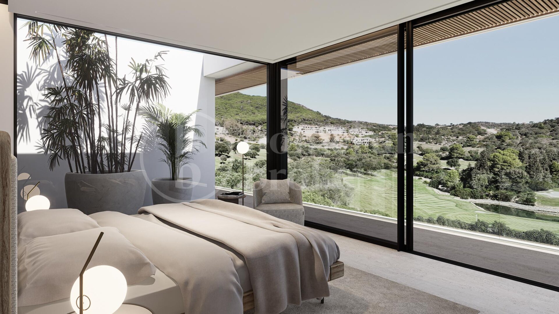 Villa Lago is an extraordinary four-bedroom villa for sale in Sotogrande, positioned on one of the most privileged corners of La Reserva Golf Course. Surrounded by unspoiled nature and panoramic golf views, this modern residence is designed to maximise its exceptional setting, combining elegance, light, and architectural precision.