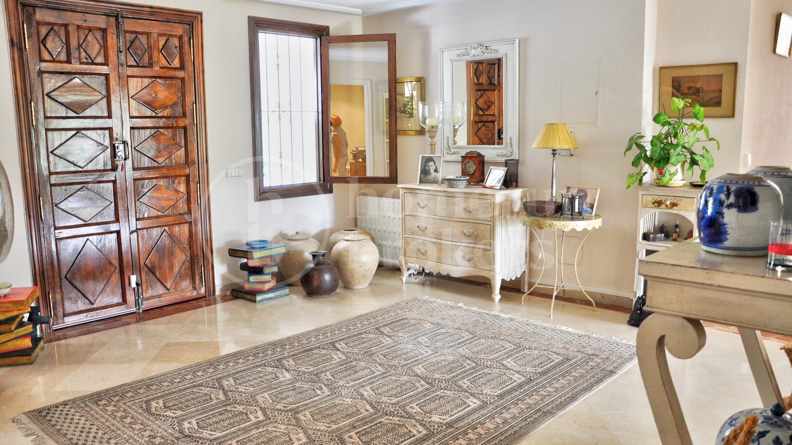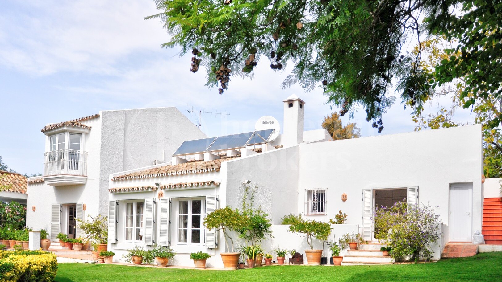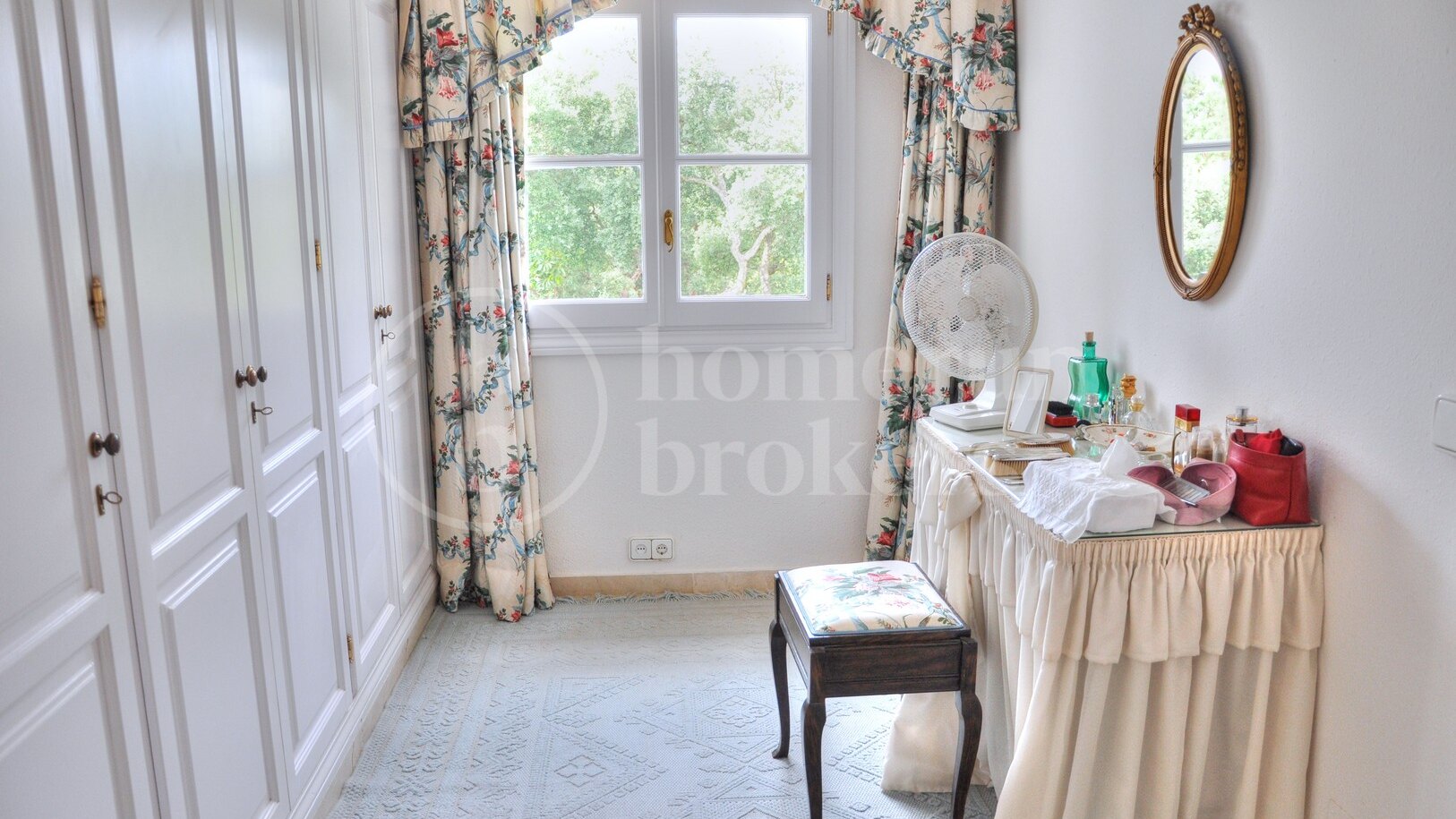 A family villa with lake views and outstanding expansion potential, located just a two-minute walk from Sotogrande International School. This Andalusian-style residence, built in 2004, sits on a generous 1,564 m² elevated plot in one of the most convenient and family-oriented parts of Sotogrande Alto. The property offers 366 m² of built space, including three bedrooms and three bathrooms distributed over two levels, and combines timeless Mediterranean charm with modern comfort. Its southwest orientation fills the interiors with natural light throughout the day and guarantees warm, colourful sunsets from the upper floor, where pleasant views toward the lake enhance the tranquillity of the setting.
