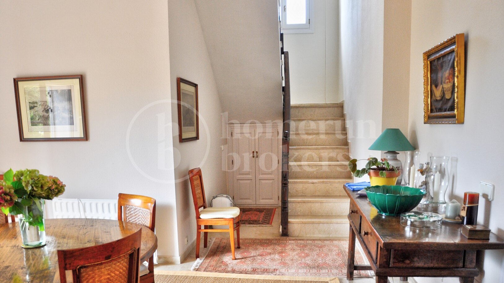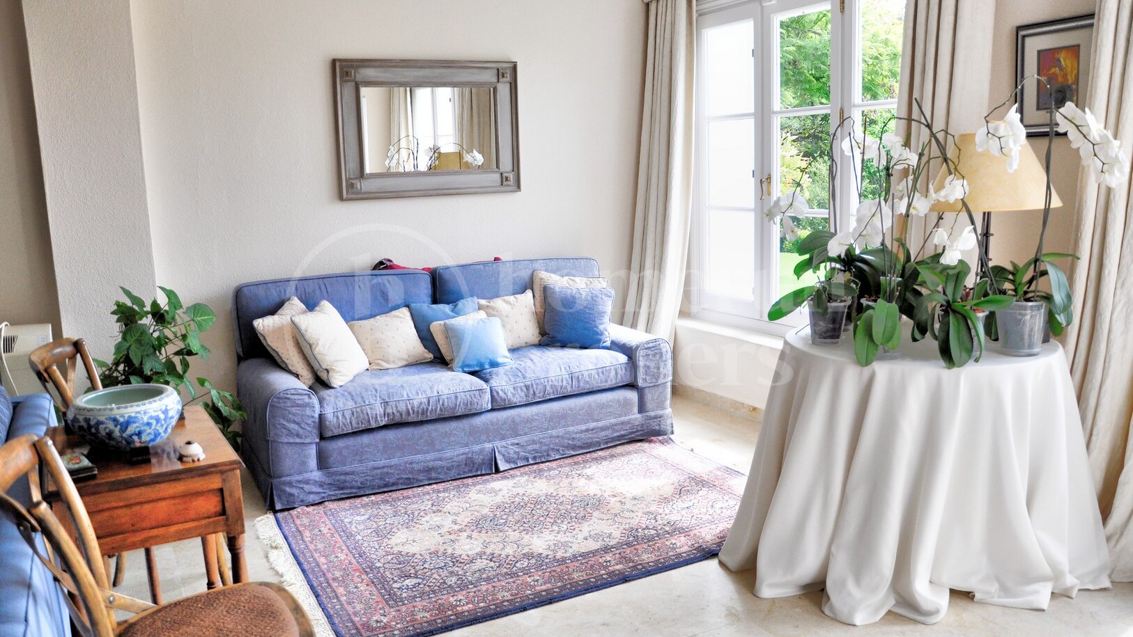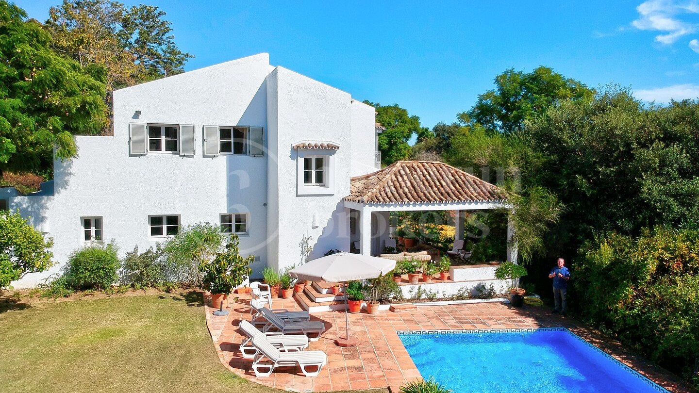 A family villa with lake views and outstanding expansion potential, located just a two-minute walk from Sotogrande International School. This Andalusian-style residence, built in 2004, sits on a generous 1,564 m² elevated plot in one of the most convenient and family-oriented parts of Sotogrande Alto. The property offers 366 m² of built space, including three bedrooms and three bathrooms distributed over two levels, and combines timeless Mediterranean charm with modern comfort. Its southwest orientation fills the interiors with natural light throughout the day and guarantees warm, colourful sunsets from the upper floor, where pleasant views toward the lake enhance the tranquillity of the setting.