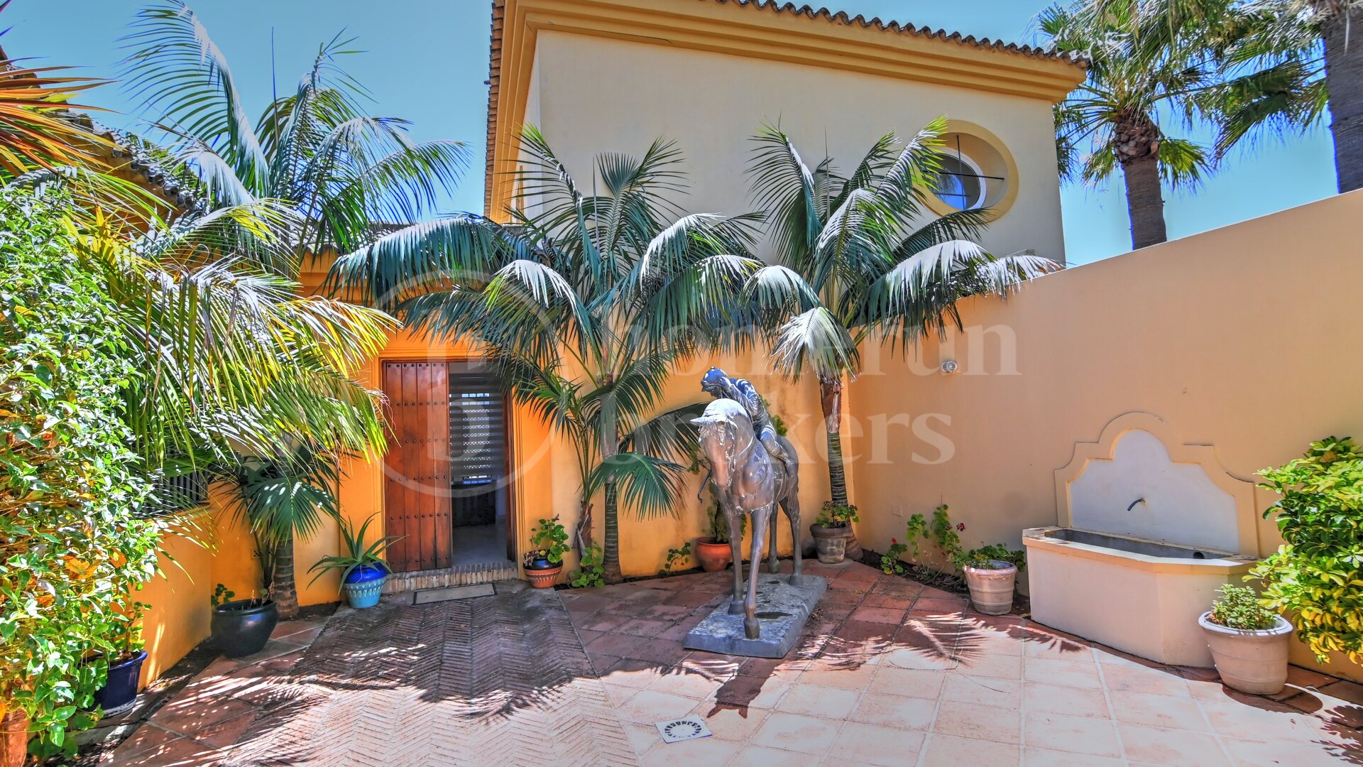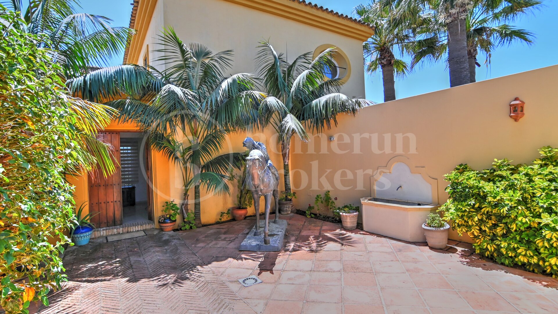 A family villa with lake views and outstanding expansion potential, located just a two-minute walk from Sotogrande International School. This Andalusian-style residence, built in 2004, sits on a generous 1,564 m² elevated plot in one of the most convenient and family-oriented parts of Sotogrande Alto. The property offers 366 m² of built space, including three bedrooms and three bathrooms distributed over two levels, and combines timeless Mediterranean charm with modern comfort. Its southwest orientation fills the interiors with natural light throughout the day and guarantees warm, colourful sunsets from the upper floor, where pleasant views toward the lake enhance the tranquillity of the setting.