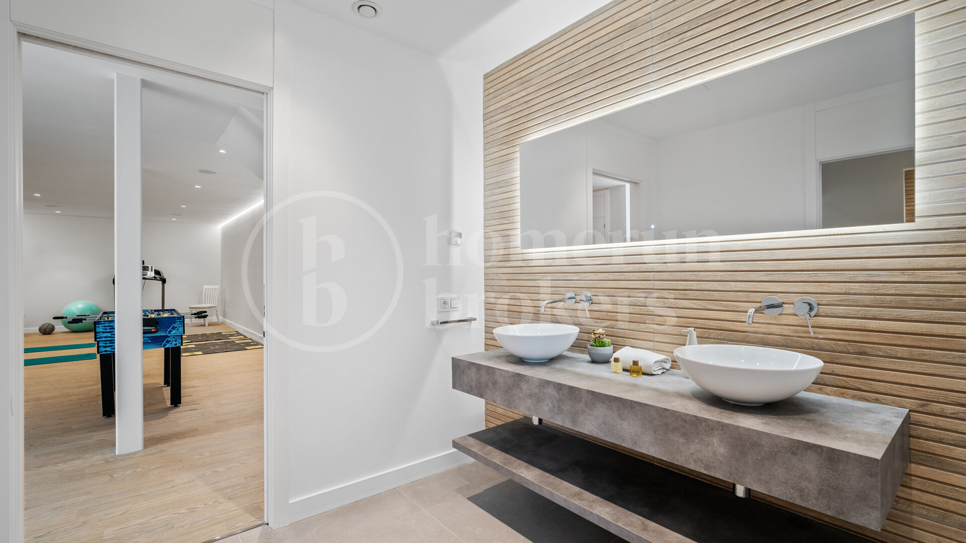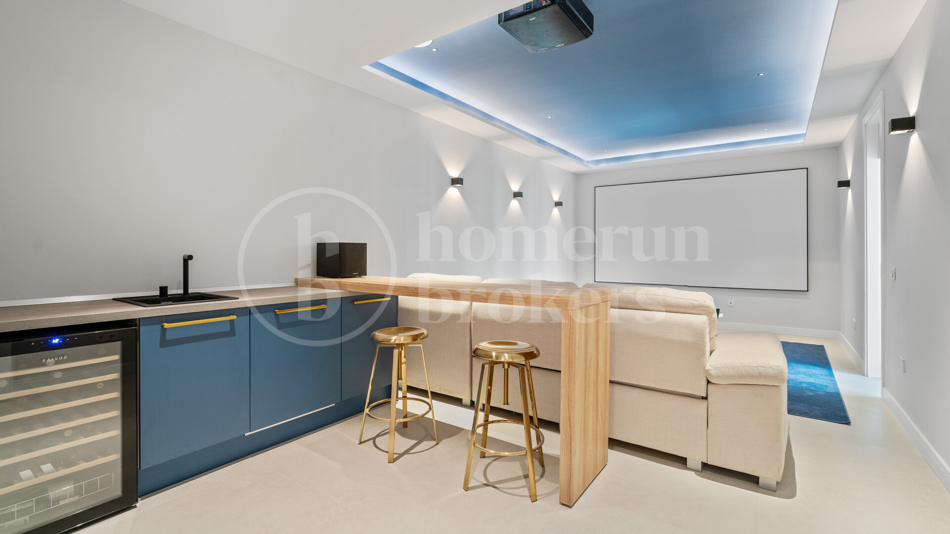 The expansive terrace is ideal for relaxing and entertaining, while the private pool, jacuzzi, sauna, and cinema room offer ultimate relaxation and entertainment. Fitness enthusiasts will appreciate the fully equipped gym. The stunning master bedroom features a lavish bath, balcony, and breathtaking views. Additionally, a thoughtfully designed kids’ play area is visible from the living room, ensuring peace of mind for parents.
