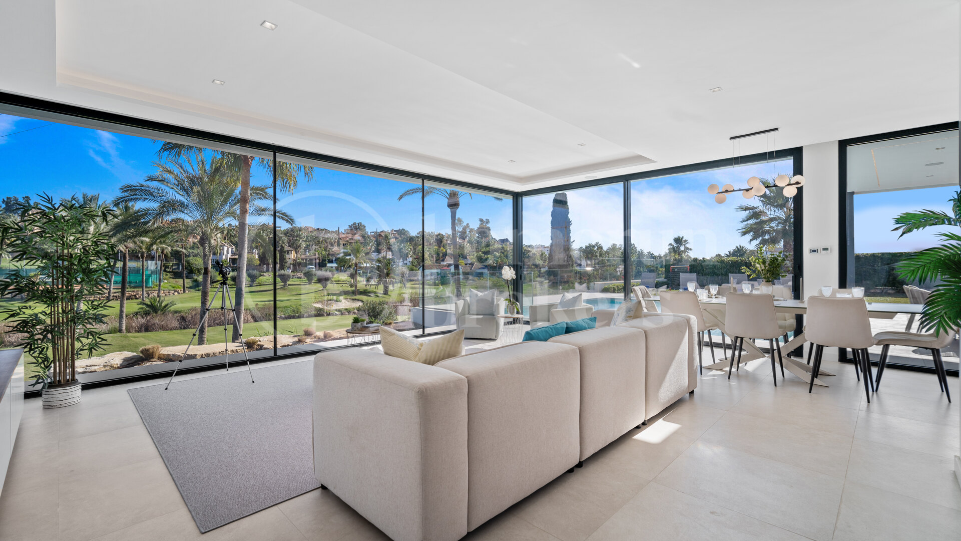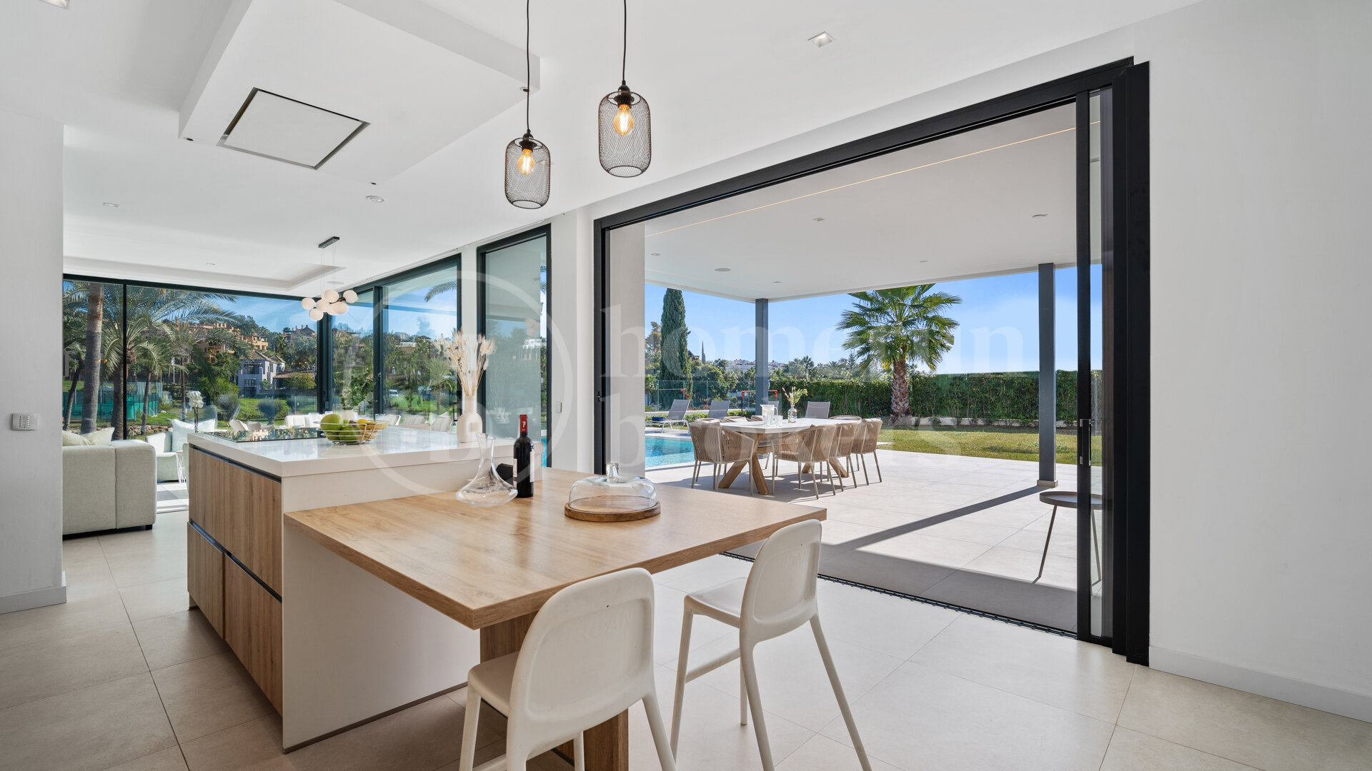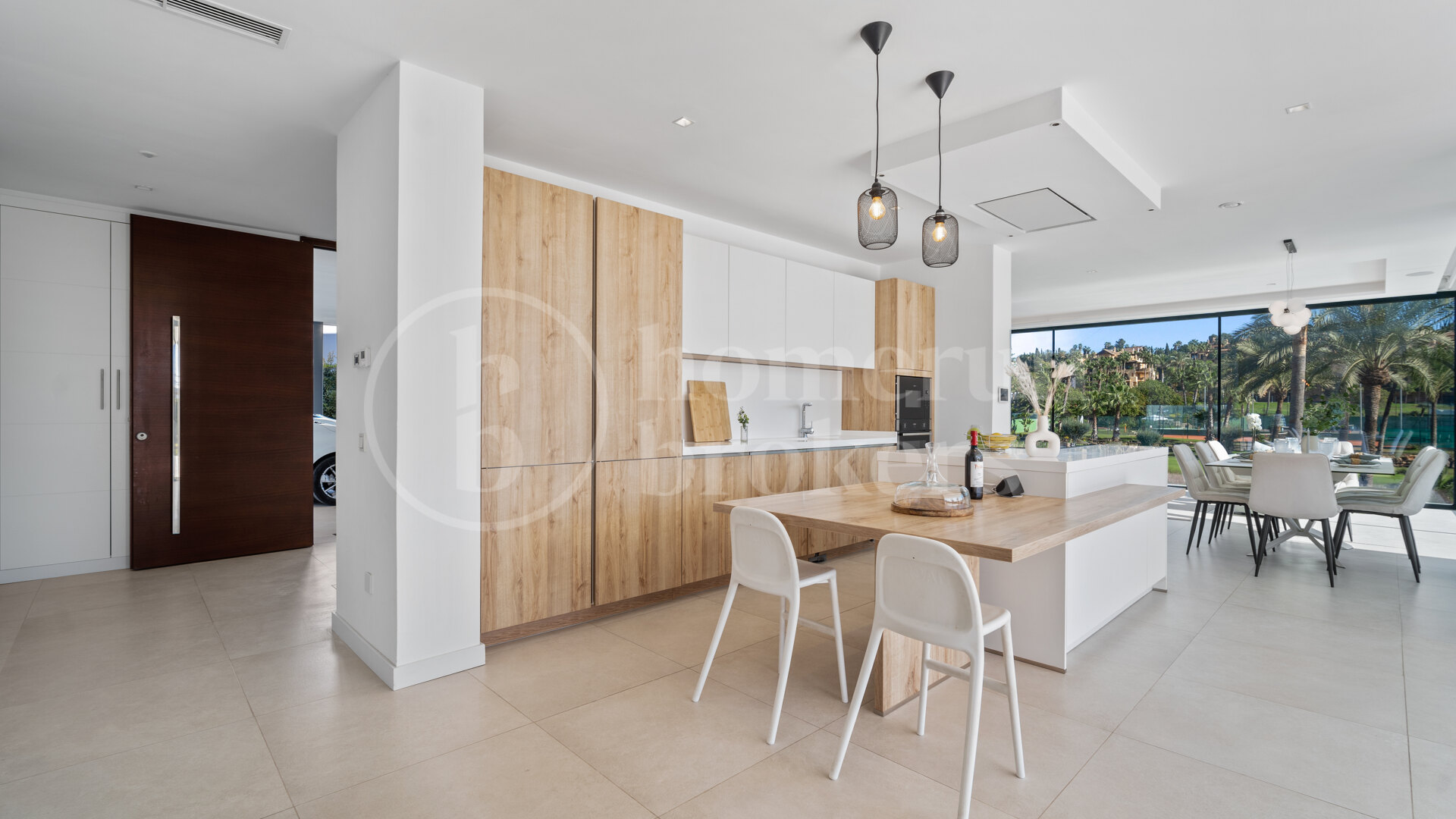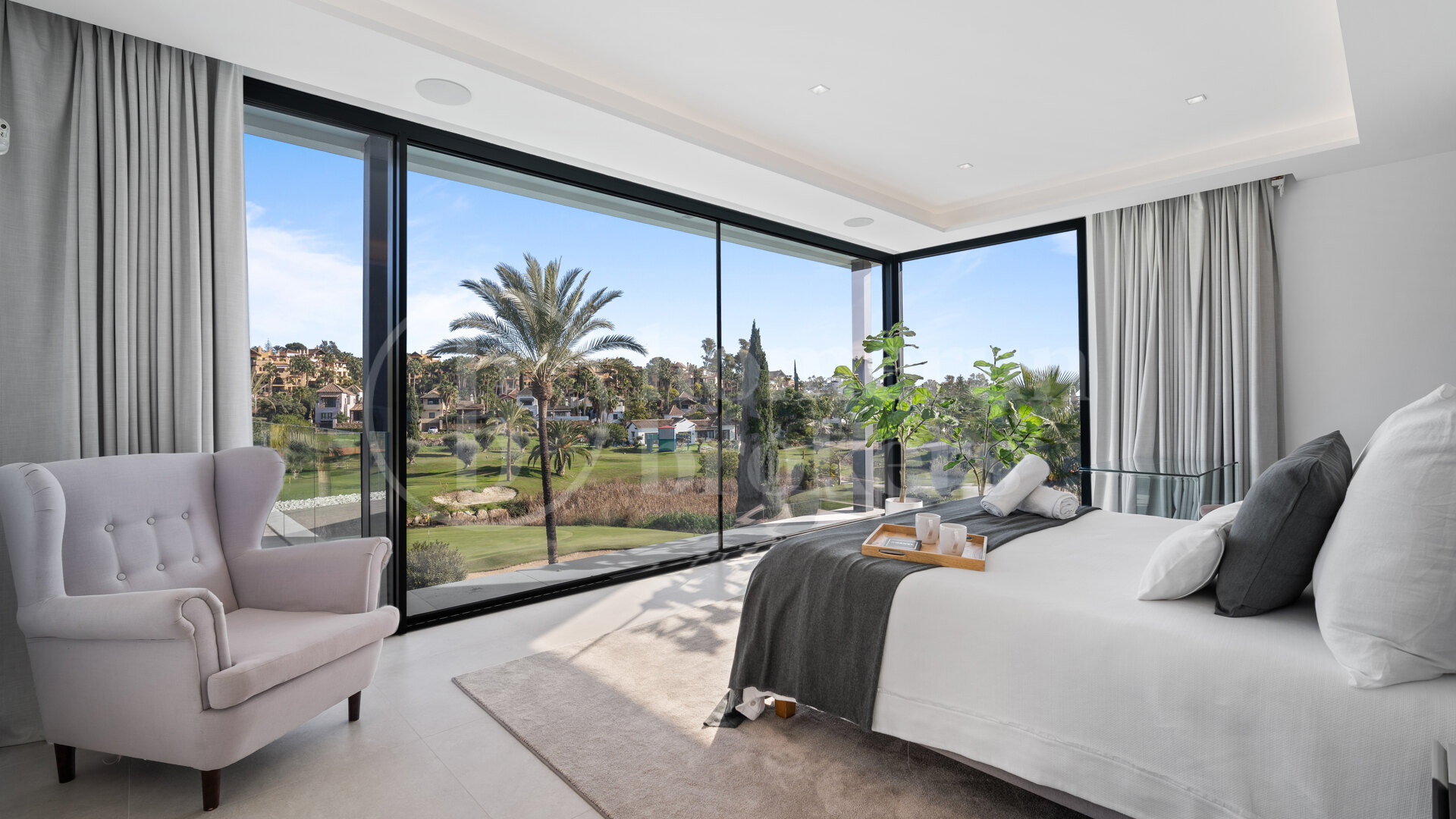 Escape to luxury this summer with our breathtaking 5-bedroom villa in Paraiso, perfect for families seeking elegance, comfort, and convenience. Located just a 10-minute drive or a 40-minute walk to the pristine beach and only 15 minutes by car to the vibrant Puerto Banus, this villa is surrounded by shops and restaurants for your utmost convenience. Enjoy magnificent front-line golf views and spacious, open-plan living with large windows that flood the interior with natural light and fresh air.