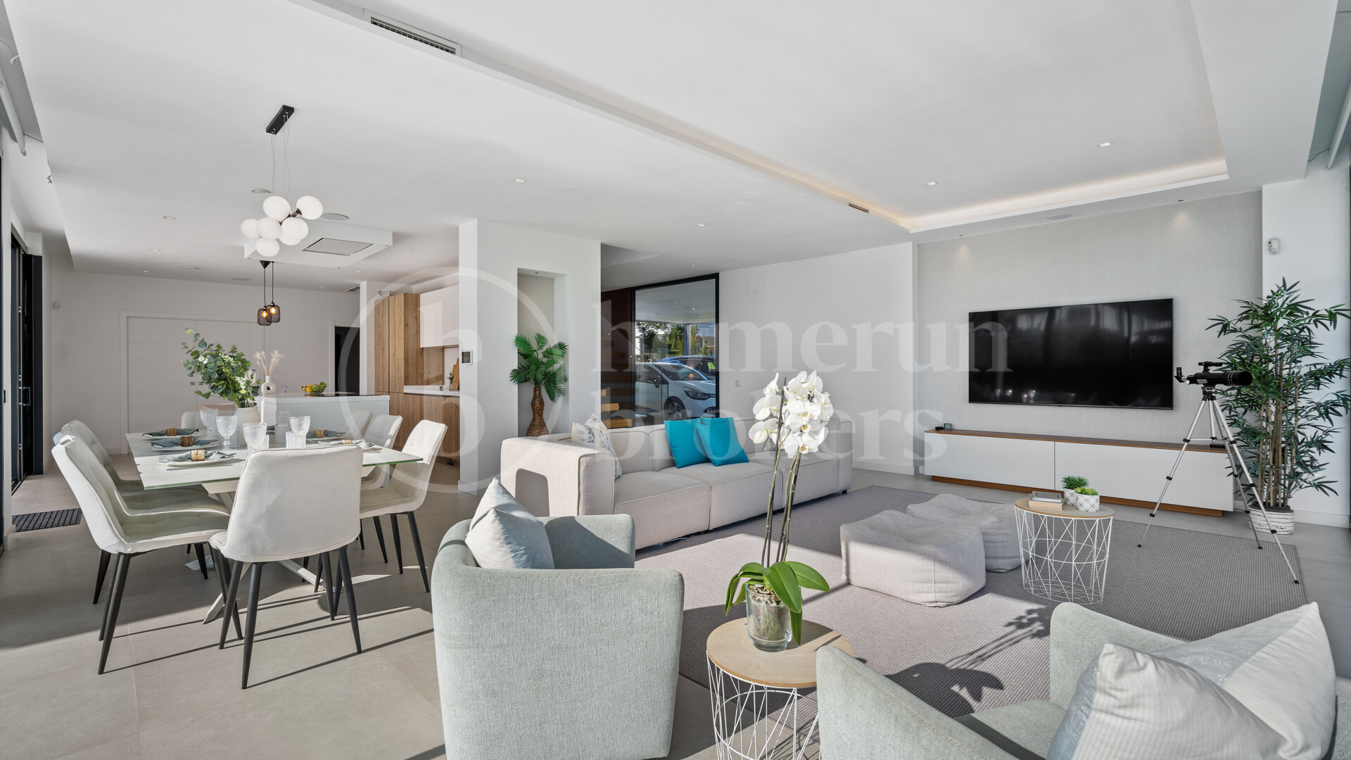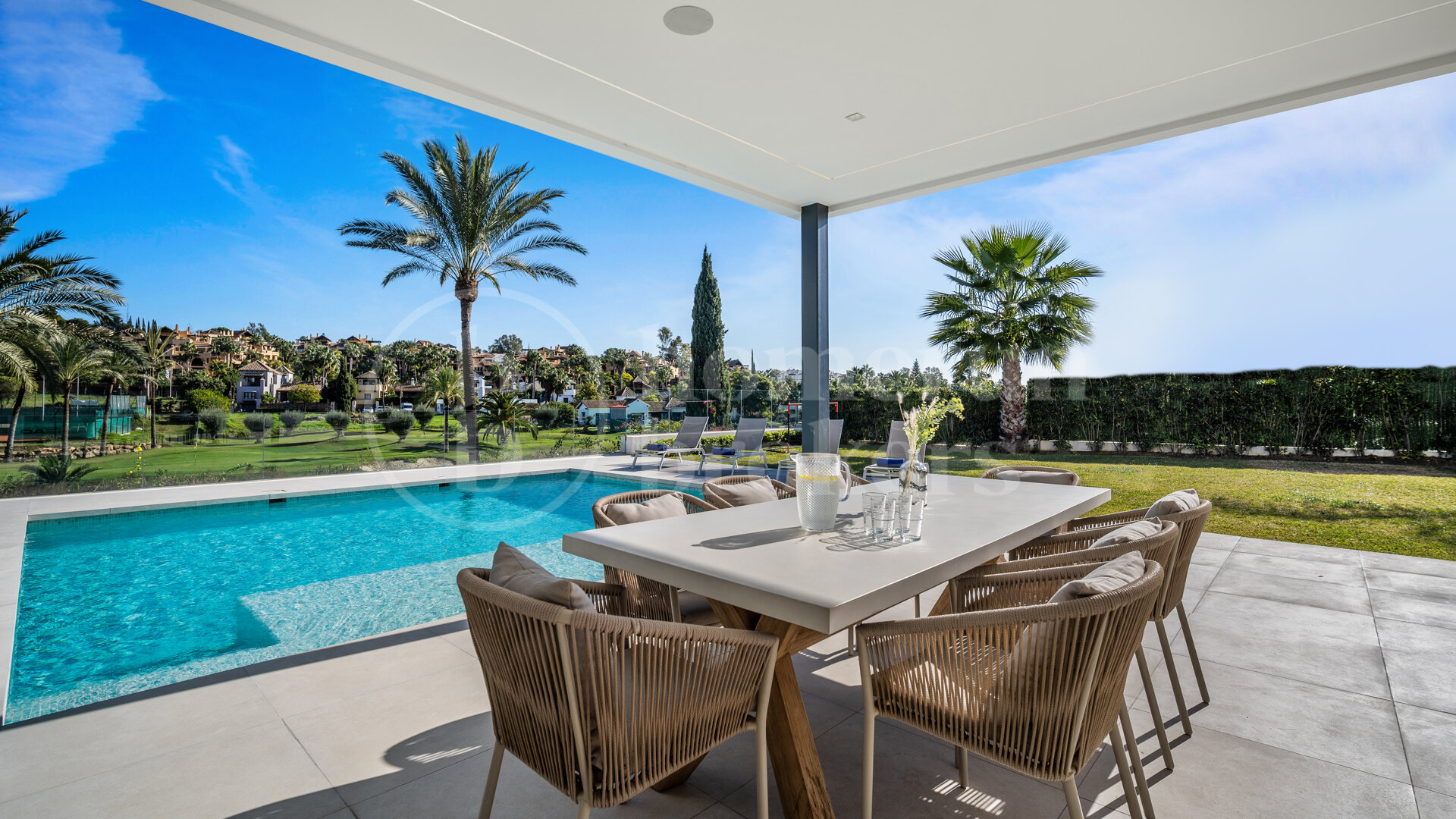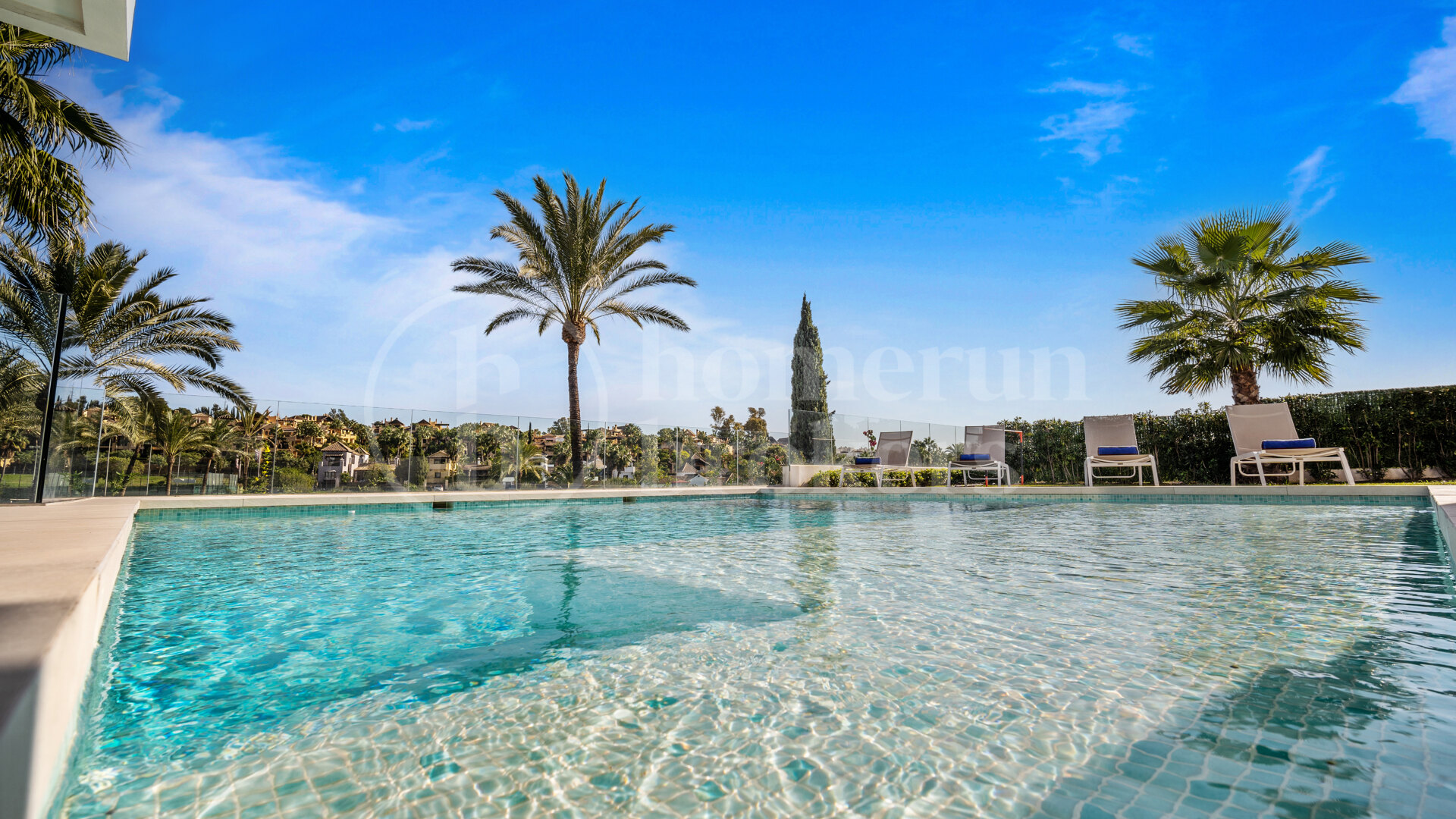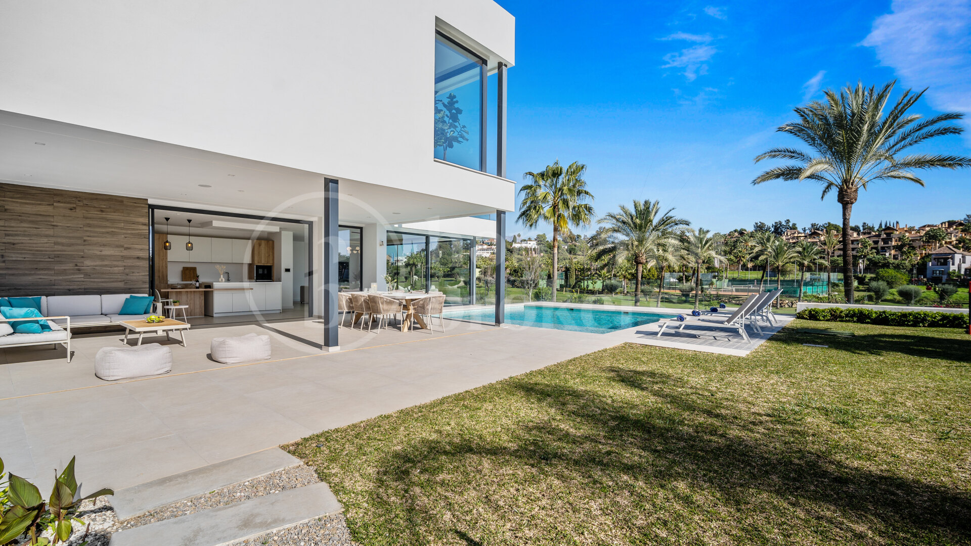 Escape to luxury this summer with our breathtaking 5-bedroom villa in Paraiso, perfect for families seeking elegance, comfort, and convenience. Located just a 10-minute drive or a 40-minute walk to the pristine beach and only 15 minutes by car to the vibrant Puerto Banus, this villa is surrounded by shops and restaurants for your utmost convenience. Enjoy magnificent front-line golf views and spacious, open-plan living with large windows that flood the interior with natural light and fresh air.