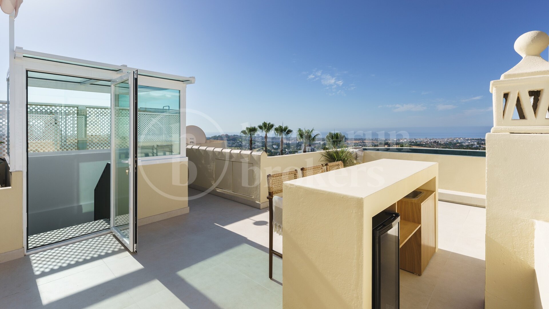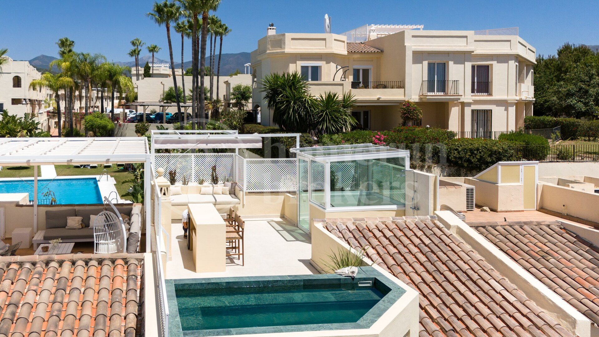 Guests enjoy exclusive use of the townhouse and its premium amenities. Host unforgettable gatherings with the outdoor kitchen and barbecue, cool off under the outdoor shower, and unwind in the heated rooftop plunge pool while soaking up panoramic mountain and sea views.