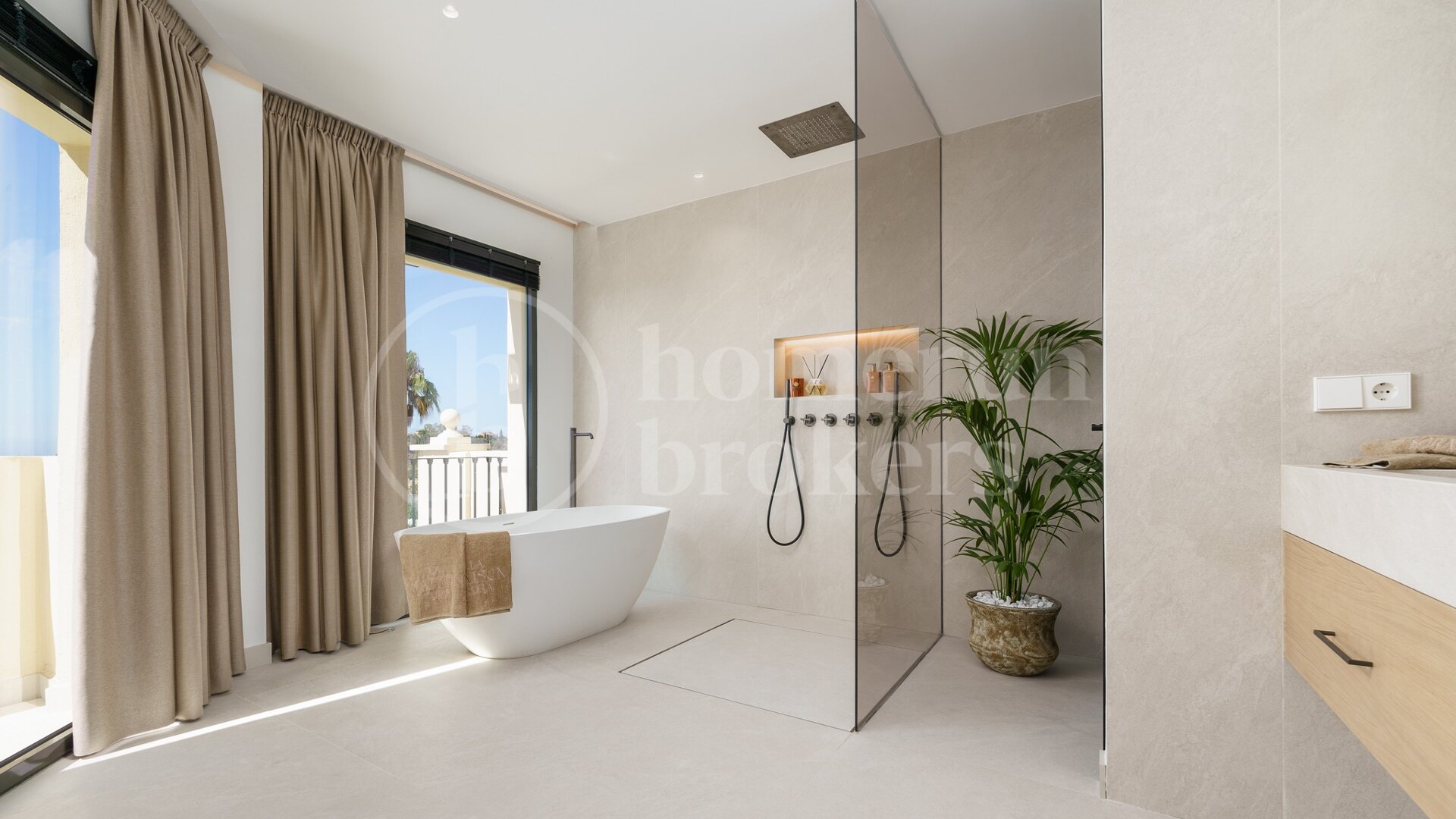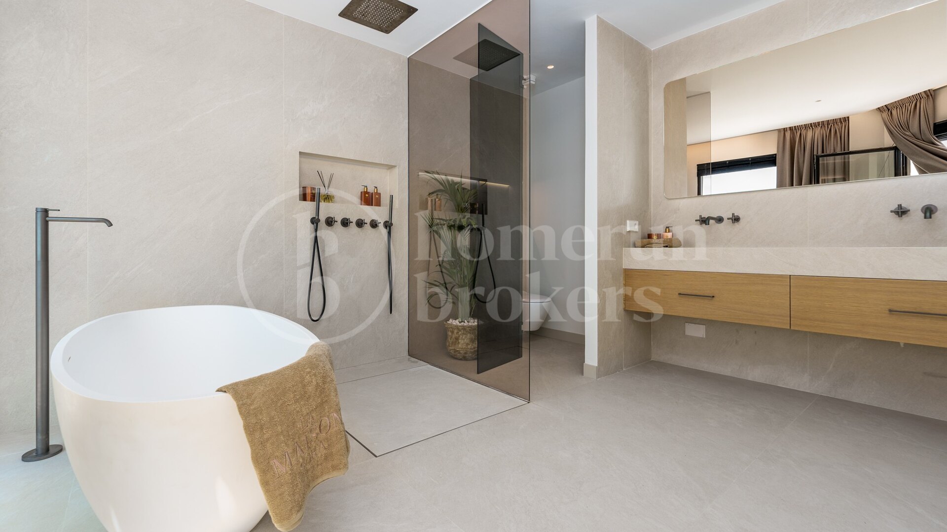 Inside, every detail has been carefully designed to combine comfort and style. The master suite is a true haven of peace. Spacious and bright, it includes a large walk-in closet with ample storage for every garment. The en-suite bathroom is a luxury oasis, featuring a freestanding bathtub, a walk-in shower, and double sinks, all crafted from noble materials with impeccable finishes.