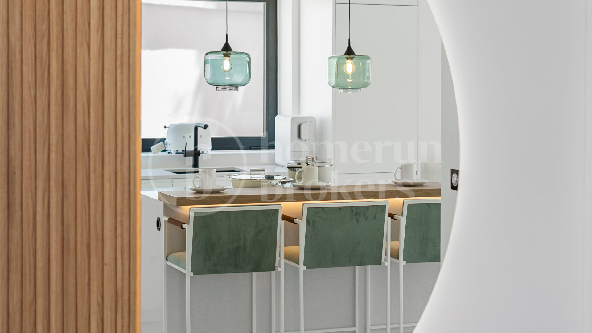Built in 1995 and completely renovated in 2023, this 84m² property provides a well-structured layout featuring three bedrooms and two bathrooms. Carefully selected, high-quality materials were used during the renovation, with attention to detail evident throughout the penthouse, including stylish dimmable lights and a unique wine wall feature.