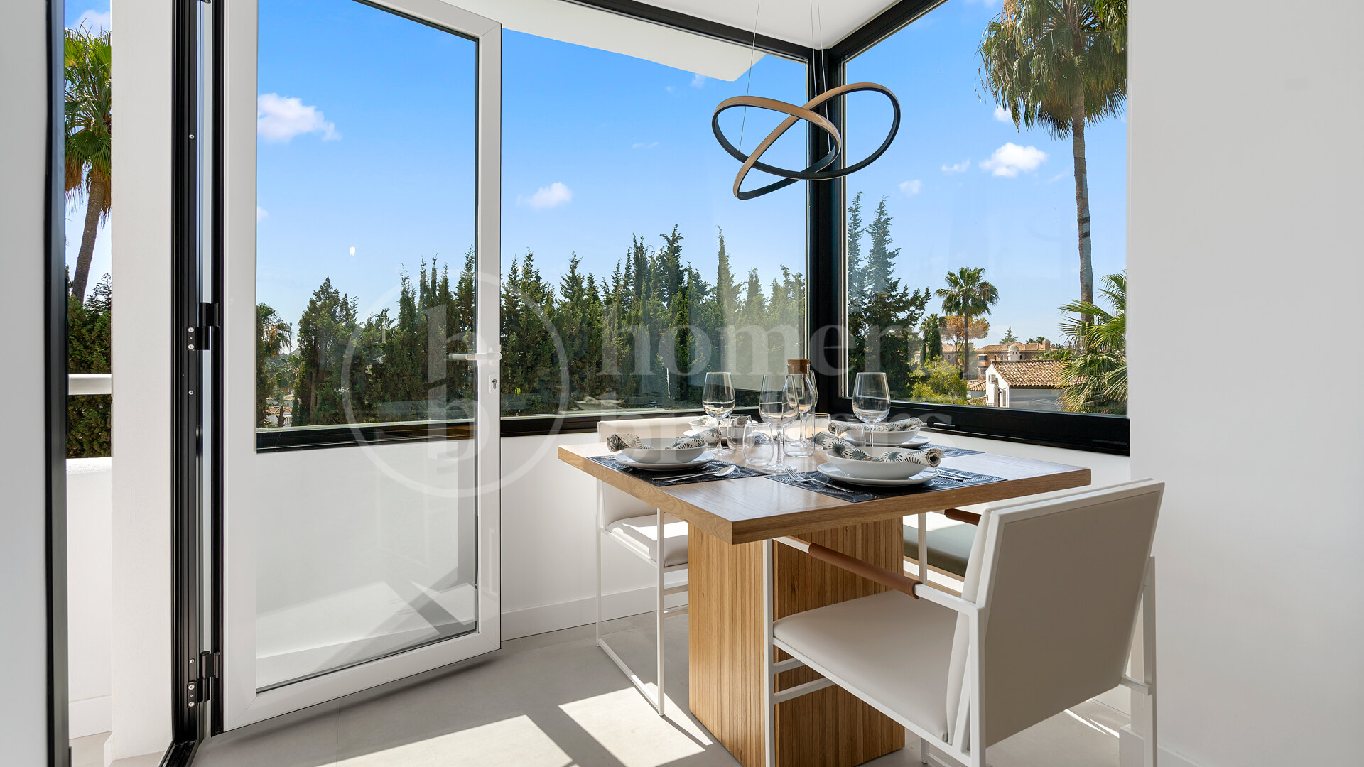Introducing Penthouse La Diva, a tastefully refurbished property located in the serene Balcon del Golf urbanization in Nueva Andalucía. Offering an excellent rental investment opportunity, this charming penthouse embodies a perfect blend of practical living and modern Scandinavian design.
