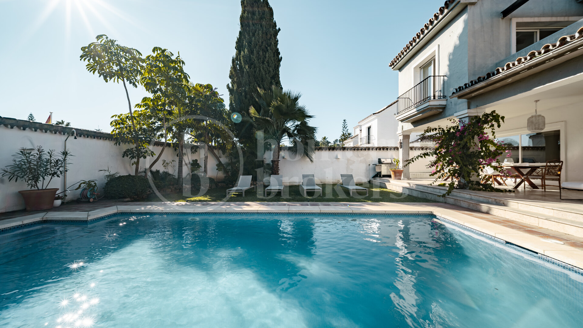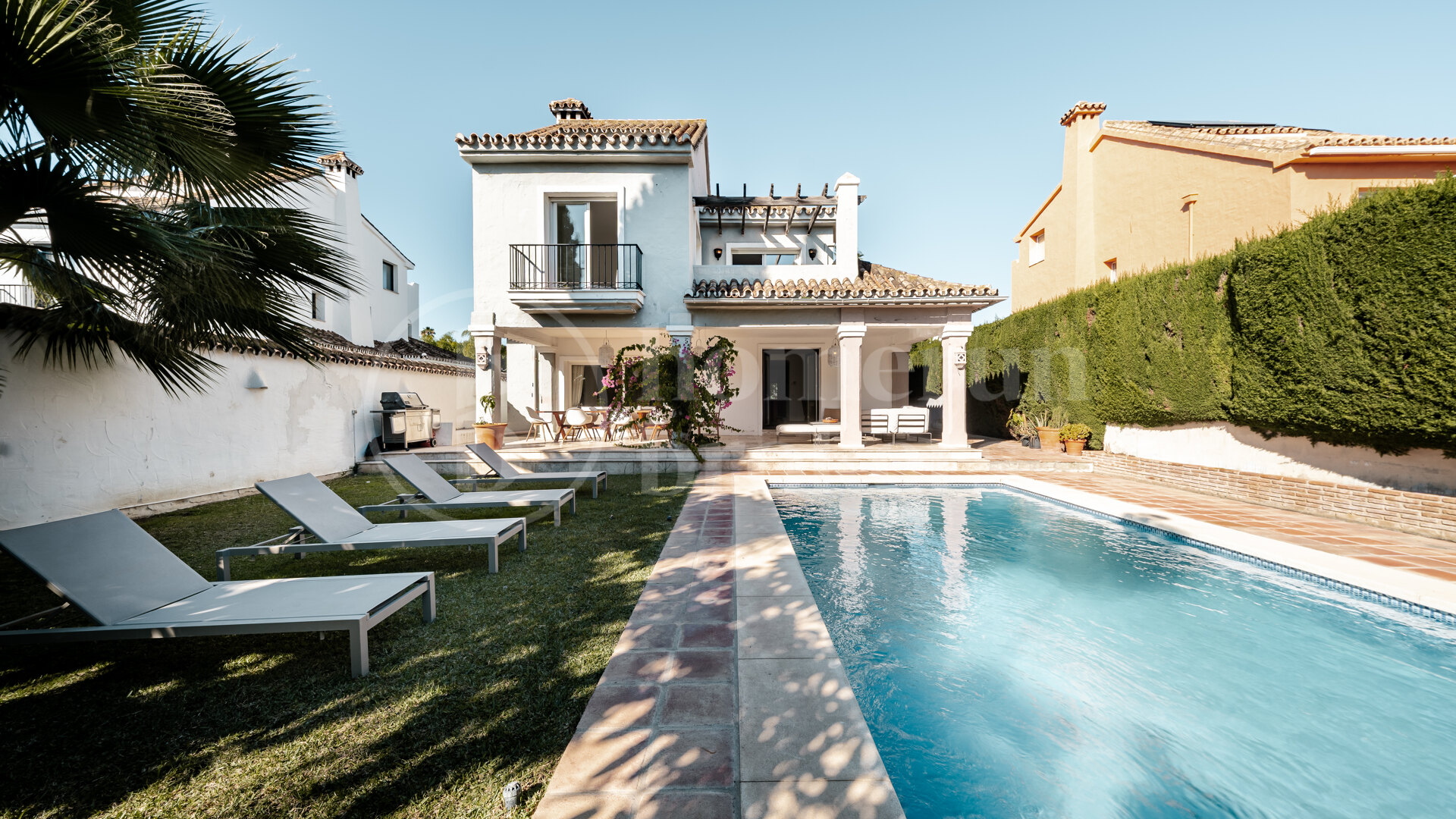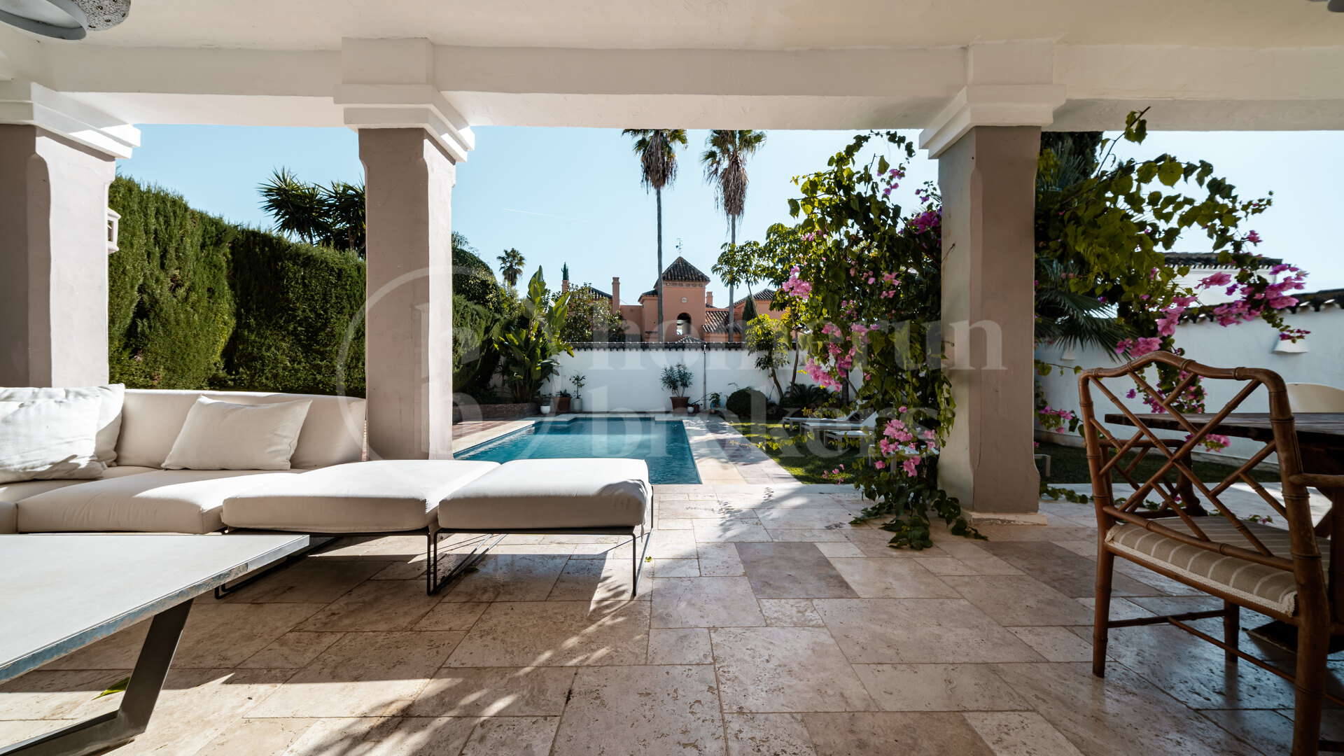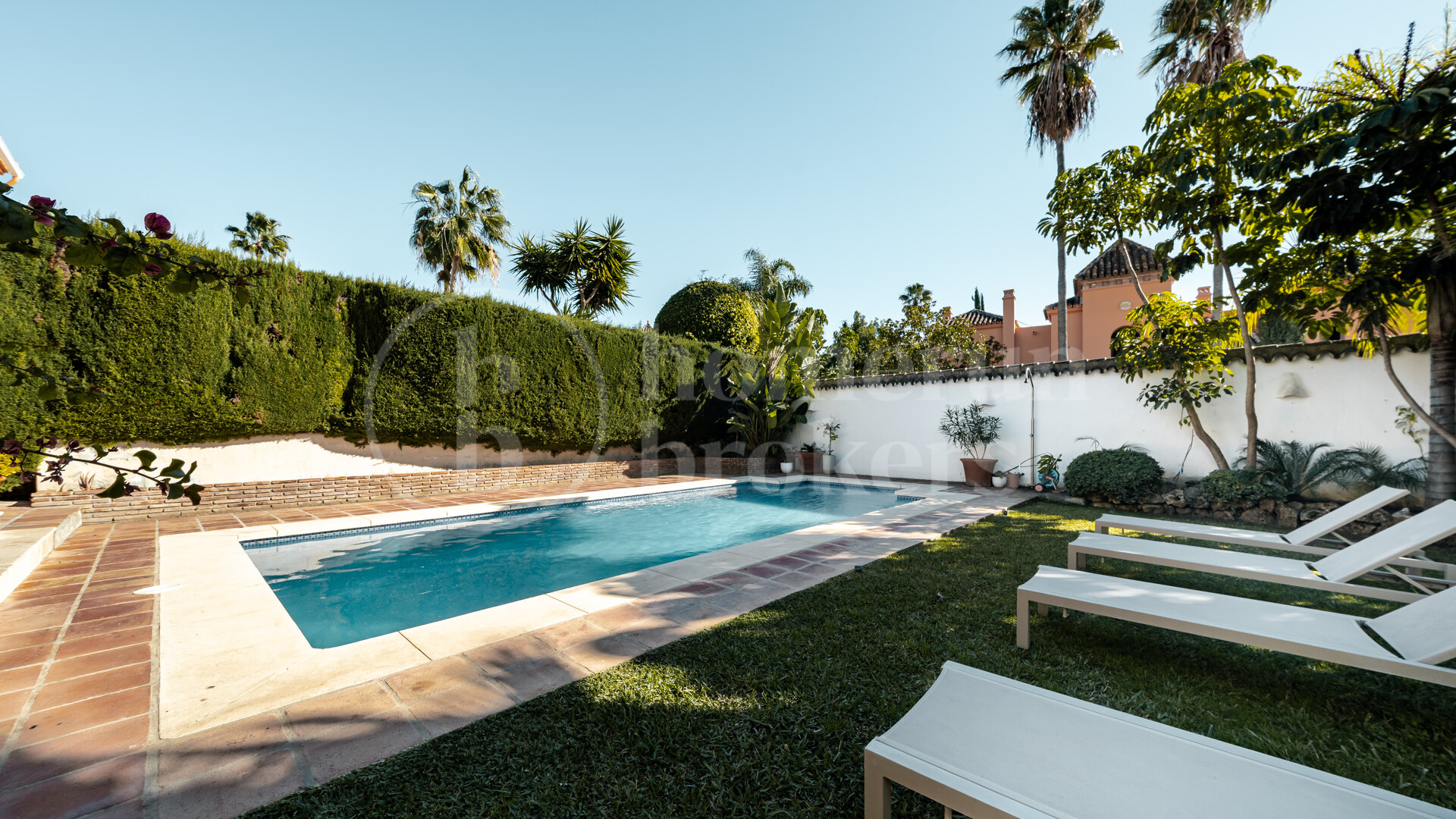 Villa Peony is a stunning Andalusian-style luxury villa located in the heart of Nueva Andalucía, one of Marbella’s most prestigious and sought-after residential areas. Offering 5 spacious bedrooms, 3 elegant bathrooms, and a guest toilet, this beautifully designed home provides the perfect blend of comfort, privacy, and Mediterranean charm.