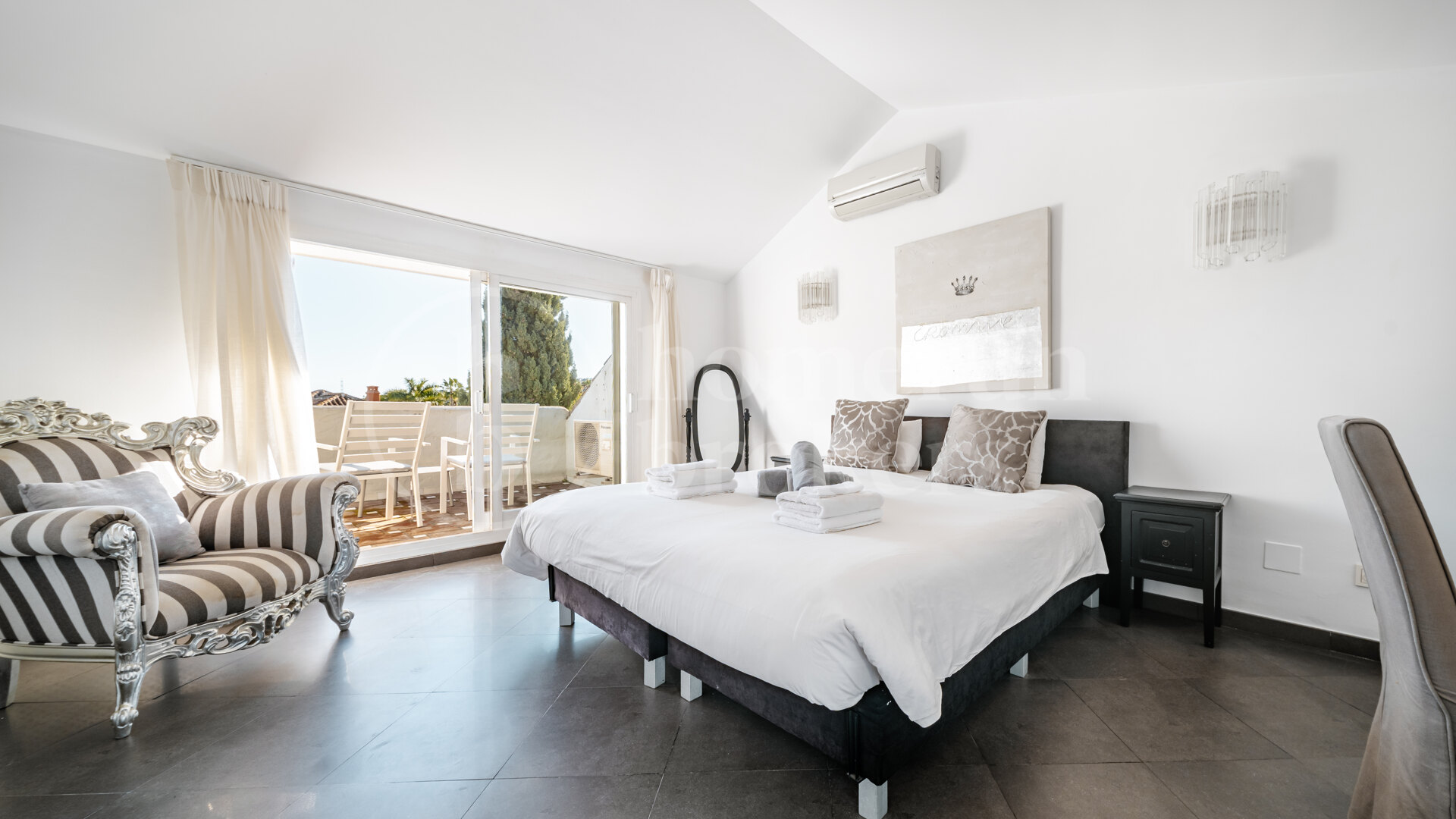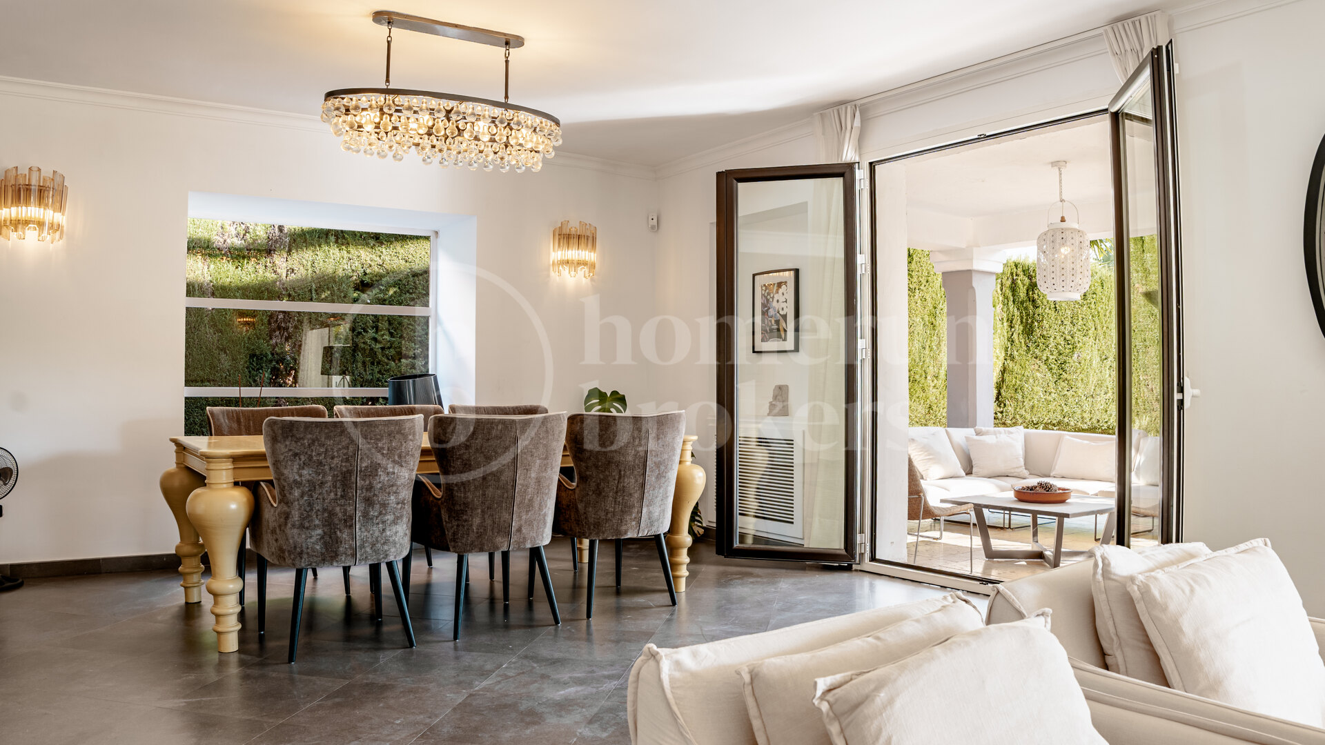 The villa’s outdoor spaces are designed for relaxation and entertainment, featuring a private swimming pool, a landscaped garden, and a spacious terrace with BBQ, perfect for al fresco dining. Whether you are hosting friends or spending a quiet evening with loved ones, Villa Peony offers an exceptional setting for enjoying Marbella’s year-round sunshine.