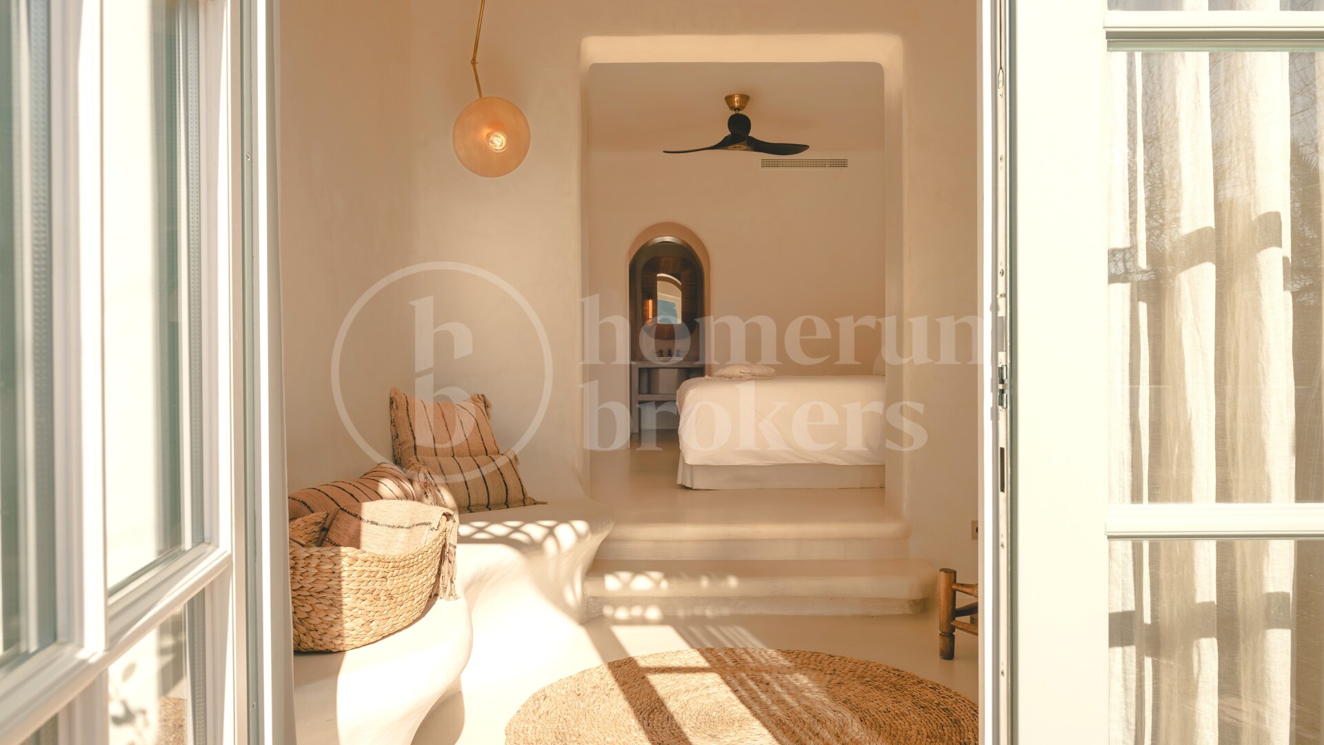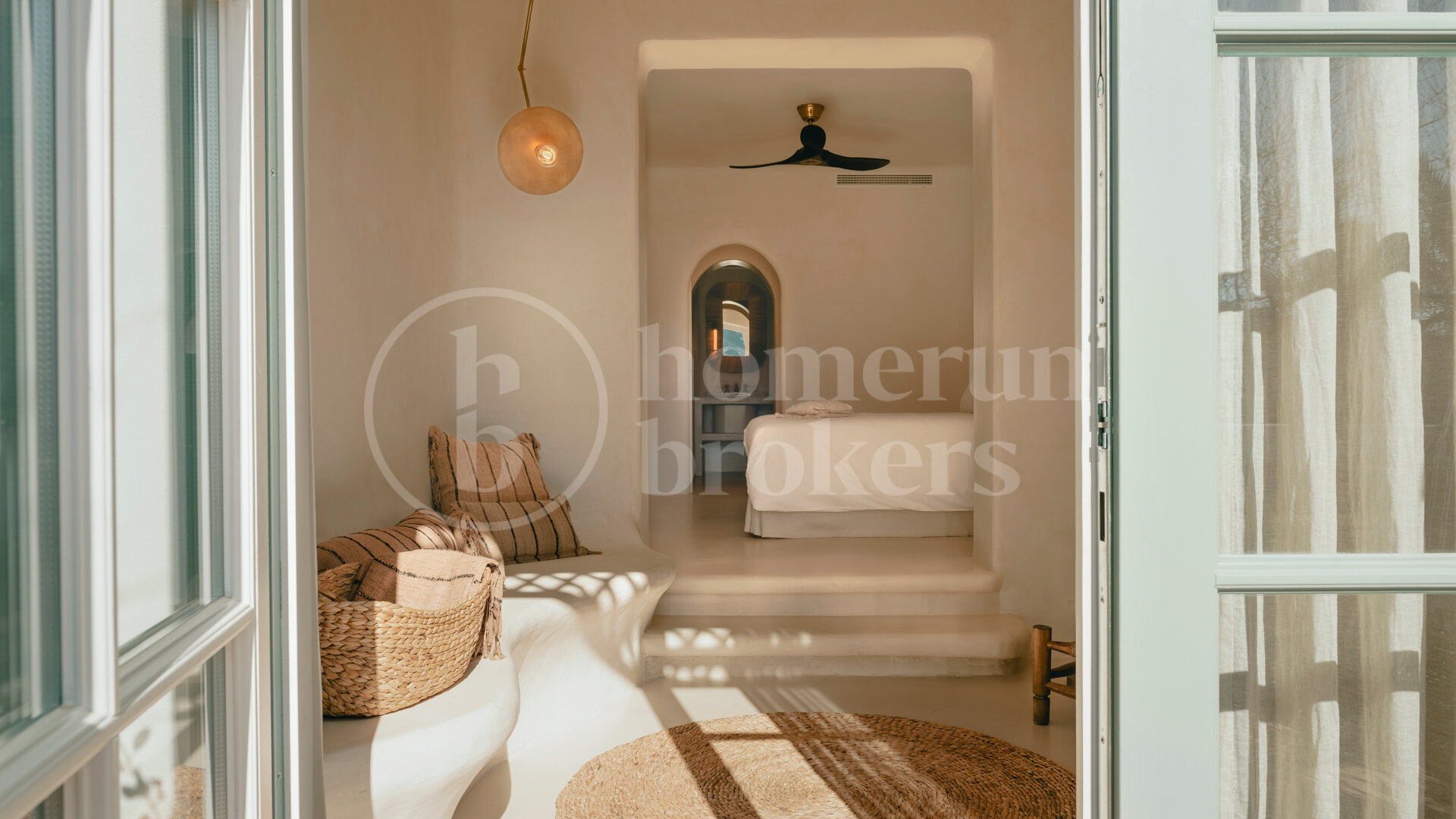 Interiören kombinerar medelhavsvärme med diskret lyx. Naturliga material, mjuka texturer och organiska former skapar en lugn och tidlös atmosfär där gäster kan koppla bort vardagen och återfå balans.